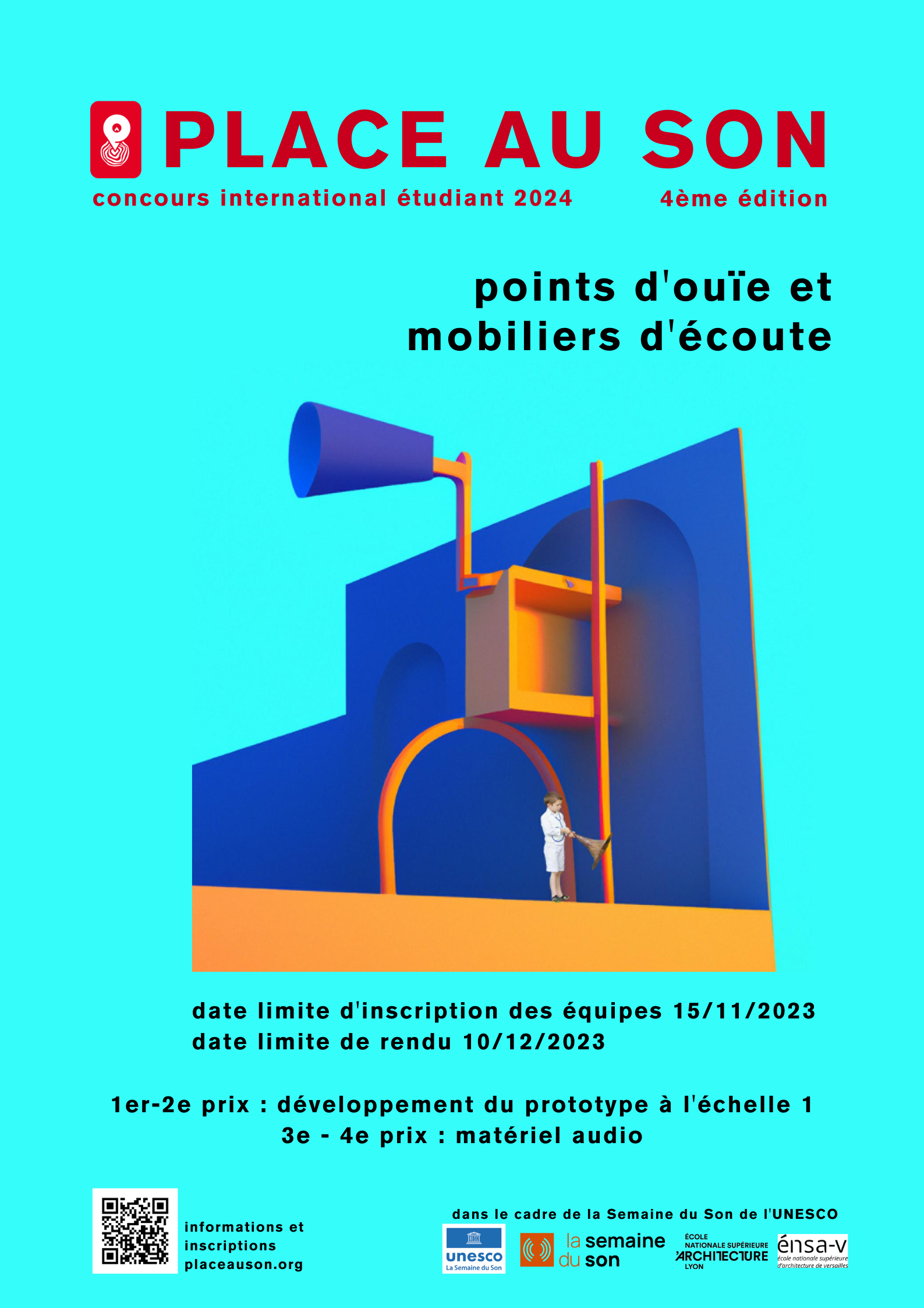 Un focus est porté dans cette édition bisannuelle sur la collecte de projets valorisant le sonore en architecture. L'inscription au concours se fait par voie numérique par mail à l’adressse: